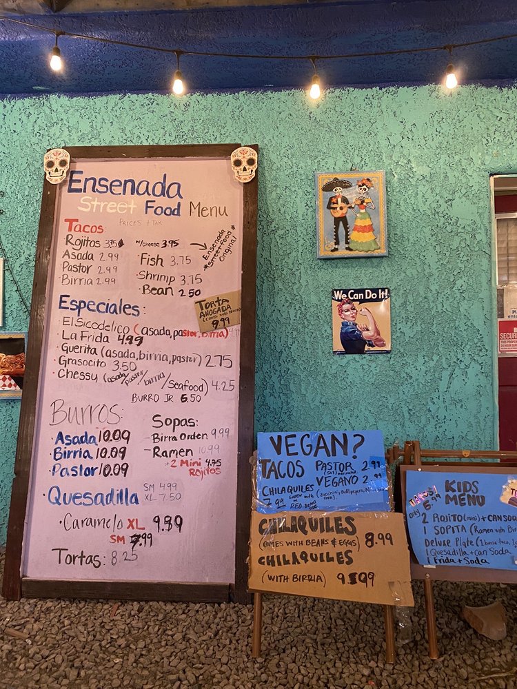 Welcome to Ensenada Street Food, Tucson's vibrant taco haven located at 1602 S Park Ave. This eatery specializes in authentic, mouthwatering tacos that celebrate the bold flavors of Mexico. Each taco is carefully crafted, from the classic Taco De Asada and Taco De Pastor ($3.45) to the seafood delights like Taco De Pescado ($4.50) and Taco De Camaron ($4.95). For a unique twist, try their Rojito WCheese, a crunchy taco filled with melted cheese and shredded beef, perfect for dipping into savory birria broth.